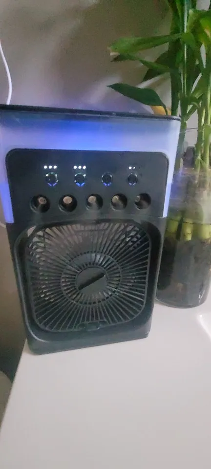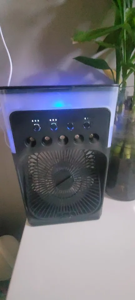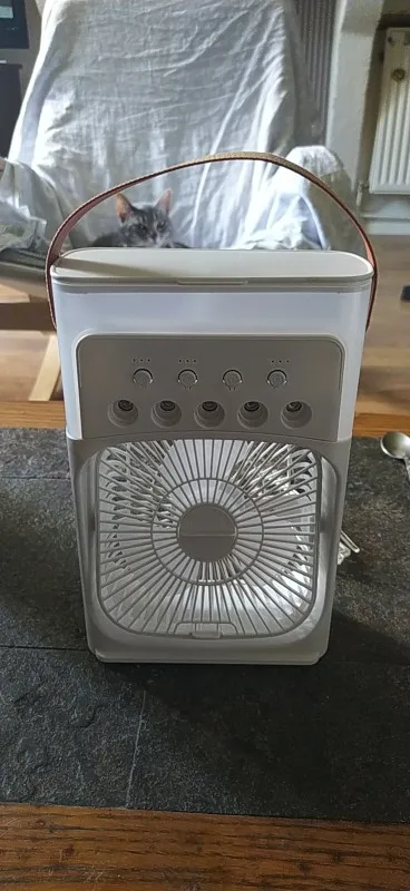 Margarita Kutch I just received my package, very happy. I received my little fan, it cools very well. You can put water and ice cubes in it, and in the middle you unscrew it to put a cotton ball with perfume, and it scents the room. You can put water and ice cubes in it. Small but effective, I recommend it Marie Lise.